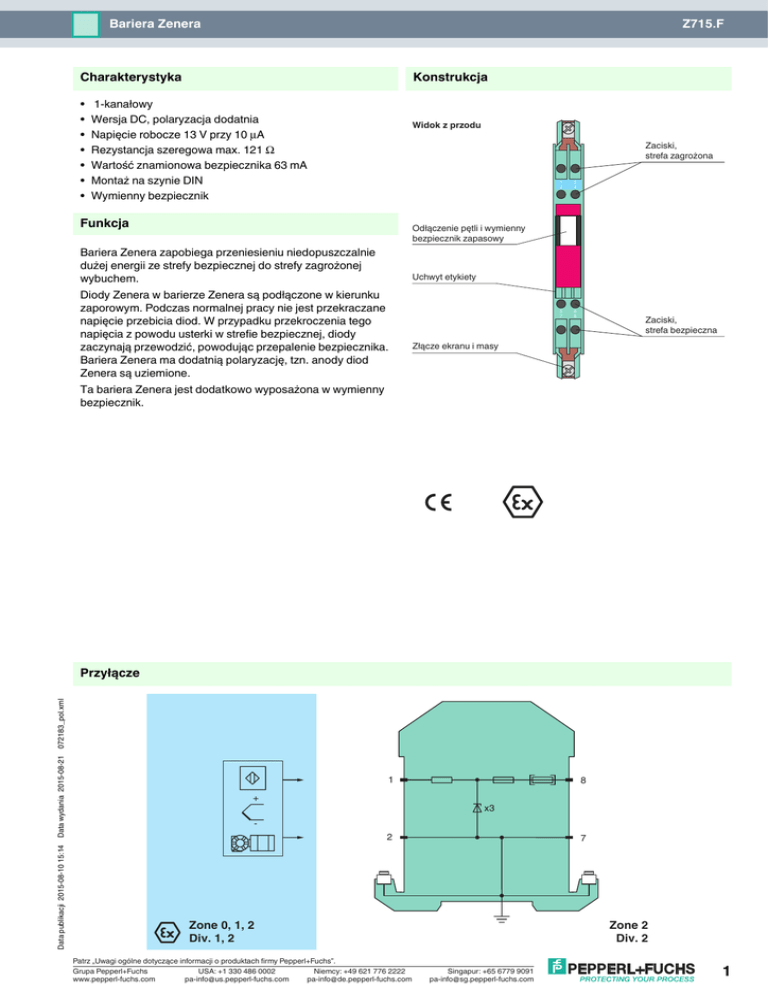 Z715.F Bariera Zenera Przyłącze Konstrukcja