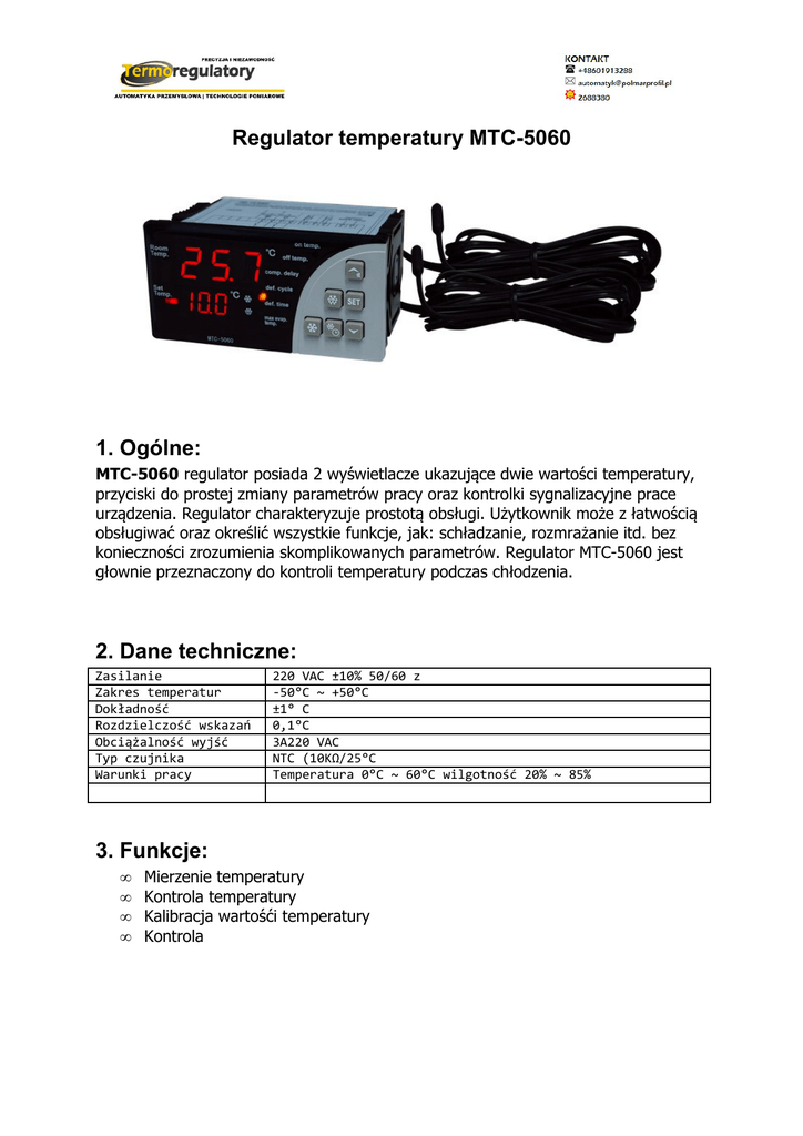 Regulator temperatury MTC-5060 1. Ogólne: 2