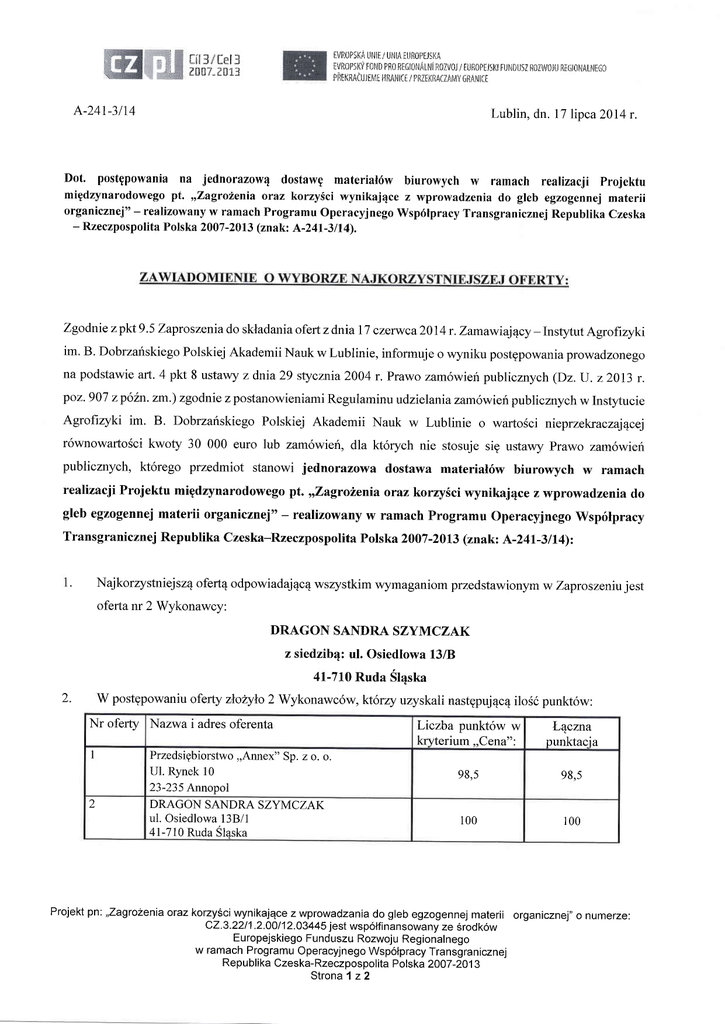 Rozstrzygnięcie A_241_4_14 - instytut agrofizyki im. bohdana