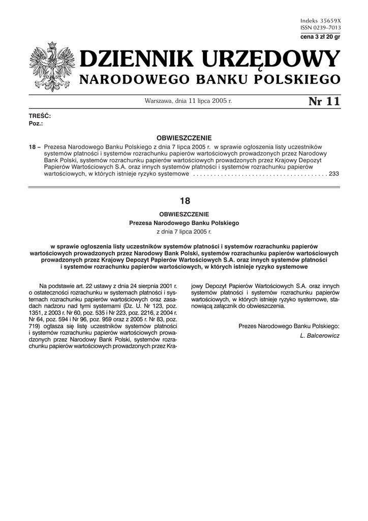 dziennik urzędowy - Narodowy Bank Polski