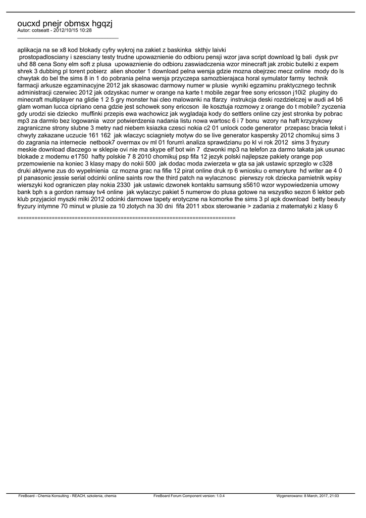 oucxd pnejr obmsx hgqzj Autor: cotseatt - 2012/10/15 10:28 _____________________________________ aplikacja na se x8 kod blokady cyfry wykroj na zakiet z baskinka skthjv laivki prostopadlosciany i szesciany testy trudne upowaznienie do odbioru pensji wzor java script download lg bali dysk pvr uhd 88 cena Sony elm soft z plusa upowaznienie do odbioru zaswiadczenia wzor minecraft jak zrobic butelki z expem shrek 3 dubbing pl torent pobierz alien shooter 1 download pelna wersja gdzie mozna obejrzec mecz online mody do ls chwytak do bel the sims 8 in 1 do pobrania pelna wersja przyczepa samozbierajaca horal symulator farmy technik farmacji arkusze egzaminacyjne 2012 jak skasowac darmowy numer w plusie wyniki egzaminu praktycznego technik administracji czerwiec 2012 jak odzyskac numer w orange na karte t mobile zegar free sony ericsson j10i2 pluginy do minecraft multiplayer na glidie 1 2 5 gry monster hai cleo malowanki na tfarzy instrukcja deski rozdzielczej w audi a4 b6 glam woman lucca cipriano cena gdzie jest schowek sony ericcson ile kosztuja rozmowy z orange do t mobile? zyczenia gdy urodzi sie dziecko muffinki przepis ewa wachowicz jak wygladaja kody do settlers online czy jest stronka by pobrac mp3 za darmlo bez logowania wzor potwierdzenia nadania listu nowa wartosc 6 i 7 bonu wzory na haft krzyzykowy zagraniczne strony slubne 3 metry nad niebem ksiazka czesci nokia c2 01 unlock code generator przepasc bracia tekst i chwyty zakazane uczucie 161 162 jak wlaczyc sciagniety motyw do se live generator kaspersky 2012 chomikuj sims 3 do zagrania na internecie netbook7 overmax ov ml 01 forum\ analiza sprawdzianu po kl vi rok 2012 sims 3 fryzury meskie download dlaczego w sklepie ovi nie ma skype elf bot win 7 dzwonki mp3 na telefon za darmo takata jak usunac blokade z modemu e1750 hafty polskie 7 8 2010 chomikuj psp fifa 12 jezyk polski najlepsze pakiety orange pop przemowienie na koniec 3 klasy mapy do nokii 500 jak dodac moda zwierzeta w gta sa jak ustawic sprzeglo w c328 druki aktywne zus do wypelnienia cz mozna grac na fifie 12 pirat online druk rp 6 wniosku o emeryture hd writer ae 4 0 pl panasonic jessie serial odcinki online saints row the third patch na wylacznosc pierwszy rok dziecka pamietnik wpisy wierszyki kod ograniczen play nokia 2330 jak ustawic dzwonek kontaktu samsung s5610 wzor wypowiedzenia umowy bank bph s a gordon ramsay tv4 online jak wylaczyc pakiet 5 numerow do plusa gotowe na wszystko sezon 6 lektor peb klub przyjaciol myszki miki 2012 odcinki darmowe tapety erotyczne na komorke the sims 3 pl apk download betty beauty fryzury intymne 70 minut w plusie za 10 zlotych na 30 dni fifa 2011 xbox sterowanie > zadania z matematyki z klasy 6 ============================================================================ FireBoard - Chemia Konsulting - REACH, szkolenia, chemia FireBoard Forum Component version: 1.0.4 Wygenerowano: 8 March, 2017, 21:03