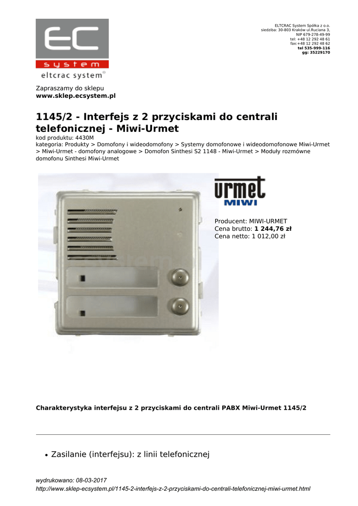 1145/2 - Interfejs z 2 przyciskami do centrali - sklep