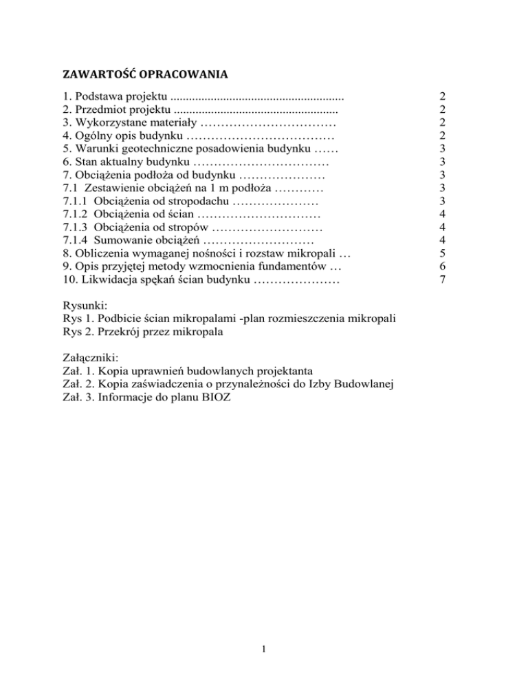 ZAWARTOŚĆ OPRACOWANIA 1. Podstawa projektu ........................................................ 2. Przedmiot projektu ..................................................... 3. Wykorzystane materiały …………………………… 4. Ogólny opis budynku ……………………………… 5. Warunki geotechniczne posadowienia budynku …… 6. Stan aktualny budynku …………………………… 7. ObciąŜenia podłoŜa od budynku ………………… 7.1 Zestawienie obciąŜeń na 1 m podłoŜa ………… 7.1.1 ObciąŜenia od stropodachu ………………… 7.1.2 ObciąŜenia od ścian ………………………… 7.1.3 ObciąŜenia od stropów ……………………… 7.1.4 Sumowanie obciąŜeń ……………………… 8. Obliczenia wymaganej nośności i rozstaw mikropali … 9. Opis przyjętej metody wzmocnienia fundamentów … 10. Likwidacja spękań ścian budynku ………………… Rysunki: Rys 1. Podbicie ścian mikropalami -plan rozmieszczenia mikropali Rys 2. Przekrój przez mikropala Załączniki: Zał. 1. Kopia uprawnień budowlanych projektanta Zał. 2. Kopia zaświadczenia o przynaleŜności do Izby Budowlanej Zał. 3. Informacje do planu BIOZ 1 2 2 2 2 3 3 3 3 3 4 4 4 5 6 7 1. Podstawa projektu Podstawą formalno-prawną projektu jest umowa nr NG-02765/P/2009 z dn. 30.07.2009 zawarta ze Specjalnym Ośrodkiem Szkolno – Wychowawczym dla Dzieci Słabowidzących nr 8 im. Dr Zofii Galewskiej, 00-448 Warszawa, ul. Koźmińska 7. 2. Przedmiot projektu Przedmiotem projektu jest wzmocnienie zagroŜonego fragmentu budynku w obrębie klatki schodowej. 3. Wykorzystane materiały 3.1 Ekspertyza Techniczna budynku szkoły przy ul. Koźmińskiej 7 w Warszawie w związku z osiadaniem fragmentu budynku i pęknięciami ścian. I T B kwiecień 2005. 3.2 Monitoring przemieszczeń pionowych. Budynek Ośrodka Szkolno – Wychowawczego przy ul. Koźmińskiej 7 w Warszawie. Warszawskie Przedsiębiorstwo Geodezyjne S.A. – kwiecień 2009. 3.3 Wykonanie badań podłoŜa gruntowego w obrębie zagroŜonego naroŜnika klatki schodowej budynku przy ul. Koźmińskiej 7. Opracowanie I T B z czerwca 2009. 3.4 Wizja lokalna i inwentaryzacja spękań murów budynku. 4. Ogólny opis budynku Rozpatrywana część budynku szkoły ma 2 kondygnacje nadziemne. Nie jest podpiwniczona. Wymiary części zasadniczej wynoszą 76 x 8 m, a prostopadłego skrzydła 23 x 11,70 m. Budynek ma konstrukcję mieszaną ze słupami Ŝelbetowymi i ścianami murowanymi, układ nośny poprzeczny, stropy gęstoŜebrowe. Ławy i ściany fundamentowe są betonowe. WzdłuŜ ścian budynku pod posadzką parteru usytuowane są wymurowane kanały instalacyjne. Wymiary kanałów (szerokość x wysokość); 100 x 130 cm, a w rejonie klatki schodowej mniejsze 80 x 80 i 80 x 65 cm. 2 5. Warunki geotechniczne posadowienia budynku W podłoŜu pod zagroŜoną częścią budynku stwierdzono niekorzystne warunki gruntowe potwierdzone badaniami polowymi wykonanymi przez ITB w czerwcu 2009 r. W profilach wykonanych sondowań gruntu przy fundamentach budynku występuje warstwa nasypu o miąŜszości 1,80 m. Nasyp jest średnio zagęszczony. W profilu sondy zlokalizowanej przy klatce schodowej występuje 0,80 m warstwa gruntu słabo zagęszczonego. W nasypie znajduje się takŜe warstwa gruntu organicznego o miąŜszości około 0,2 m. Pod nasypami na głębokości 3,10 m występują warstwy nośne gruntów składające się z piasków o dobrych parametrach wytrzymałościowych. 6. Stan aktualny budynku W południowym skrzydle budynku, w rejonie klatki schodowej, wystąpiły spękania ścian. W 2005 roku stwierdzono występowanie rys poziomych i ukośnych. W odkrywce fundamentowej znaleziono szczelinę pomiędzy ławą a murem fundamentowym, świadczącą o nierównomiernym osiadaniu fundamentów. Pod posadzkami kanału instalacyjnego odkryto pustki powstałe w wyniku wycieków wody z rur kanalizacyjnych i instalacji C.O. 7. ObciąŜenie podłoŜa od budynku. 7.1 Zestawienie obciąŜeń na 1 m podłoŜa. 7.1.1 ObciąŜenie od stropodachu. OPIS OBCIĄśENIA - pokrycie dachu – 2 x papa - płyta betonowa na belkach Ŝelbetowych - ocieplenie gruzobetonem - strop Ackerman tynk Razem stropodach ObciąŜenie śniegiem wg PN-80/B-02010 2 strefa Qk = - śnieg dla a=2 C1=0,80 Razem stałe i zmienne Obc. Współ. char obc.. kN/m2 γ 0,10 1,20 2,5 1,20 1,80 1,20 2,95 1,20 0,36 1,30 7,71 1,205 Obc. obl. kN/m2 0,12 3,00 2,16 3,54 0,47 9,29 0,9 kN/m2 0,72 1,40 1,01 8,43 3 10,30 7.1.2 ObciąŜenia stałe od ścian. 1. Ściana z cegły 38 cnm- cięŜar własny (wysokość 9,10 m) 2. tynk 3. ściana betonowa gr. 0,55 m x 24=13,2 (wysokość 1,85 m) 4. fundament o,80 x 0,32 x 24=6,14 kN/m 7.1.3 ObciąŜenia od stropów. 1. strop Ackermana 2. tynk 3. podłoga 4. obciąŜenie uŜytkowe stropów razem Obc. Współ. char. obc. kN/m2 γ 1,20 6,84 Obc. obl. kN/m2 8,21 0,57 13,2 1,30 1,20 0,74 15,84 6,14 1,20 7,34 Obc. Współ. char. obc. kN/m2 γ 2,95 1,20 0,36 1,30 0,50 1,3 2,00 1,30 5,81 Obc. obl. kN/m2 3,54 0,47 0,65 2,60 7,26 Obc. Współ. char. obc. 2 kN/m γ 21,07 29,05 67,43 25,47 6,14 149,16 Obc. obl.. kN/m2 25,75 36,30 81,44 30,36 7,34 181,19 7.1.4 Sumowanie obciąŜeń. - ObciąŜenia stałe i zmienne z rozpiętości 5/2 m=2,50 m 1. STROPODACH 8,43 x 2,50 i 10,30 x 2,50 2. 2 stropy + 2 obciąŜenia zmienne 2 x 5,81 x 2,5 3. ściana +tynk o wysokości 9,10 m 4, ściana betonowa o wys. 1,85 m 5. ława fundametowa Razem ściana zewnętrzna 4 - Ściana wewnętrzna przy klatce schodowej ObciąŜenia stałe i zmienne z rozpiętości 2,5/2 +2,6/2= około 2,50 m. Jeden bieg częściowo obciąŜa ścianę. ObciąŜenie jest mniejsze dla ściany zewnętrznej. Obliczenia nie przeprowadzono. - Ściana zewnętrzna prostopadła do powyŜszych Przyjęto 50 % obciąŜenie stropami – obciąŜenie biegiem schodowym 1. STROPODACH 8,43 x 2,50 i 10,30 x 2,50 % 2. 2 stropy + 2 obciąŜenia zmienne 2 x 5,81 x 2,5 % 3. ściana +tynk o wysokości 9,10