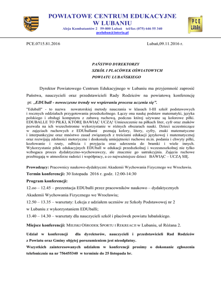 POWIATOWE CENTRUM EDUKACYJNE W LUBANIU