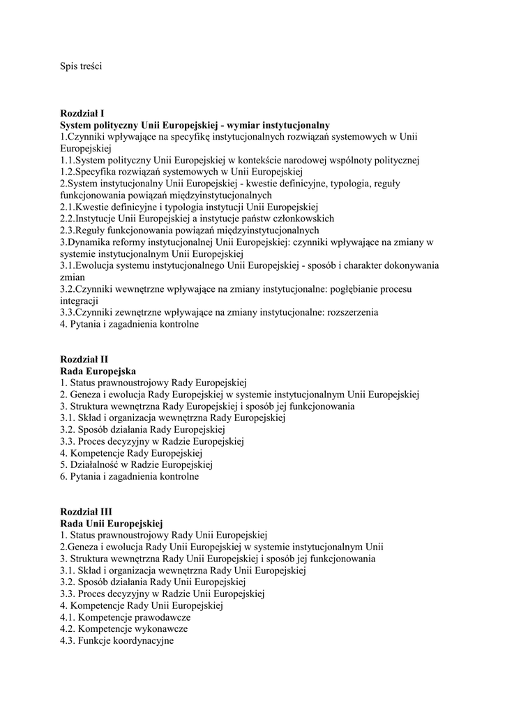 Spis treści Rozdział I System polityczny Unii Europejskiej