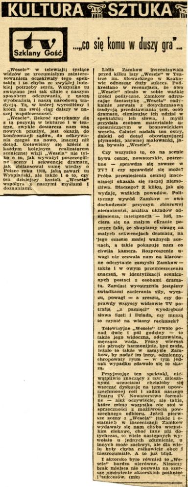 przed kilku laty „Wesele" w Tea.-trze im. _Słowa(!kiego w Kral{_!)_-,