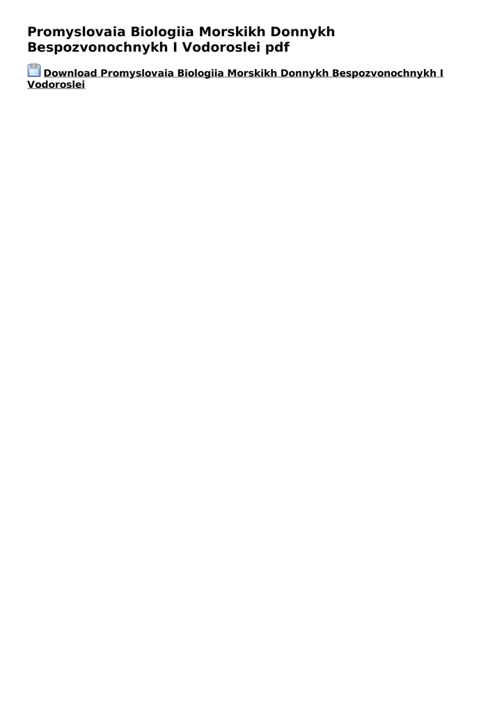 Promyslovaia Biologiia Morskikh Donnykh Bespozvonochnykh I