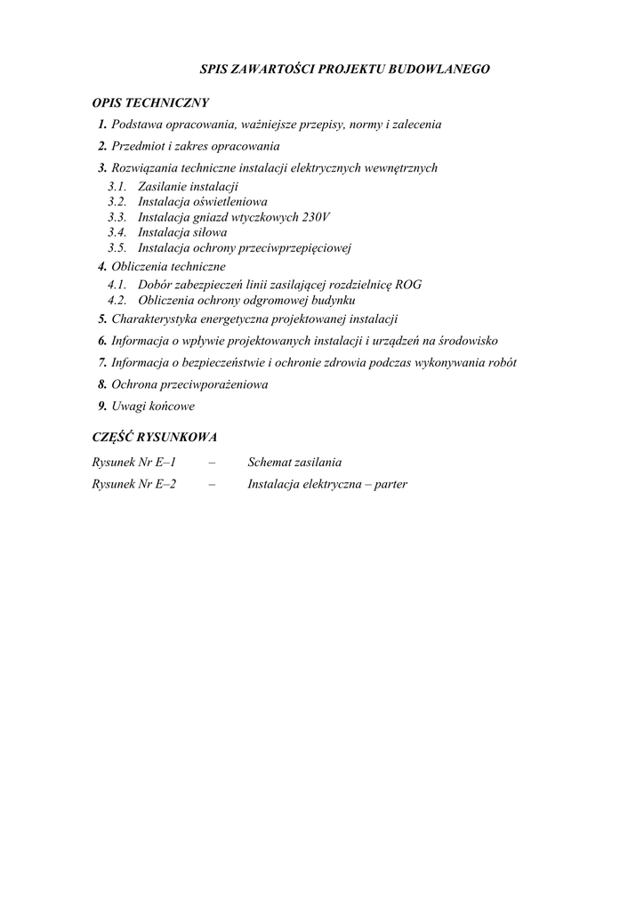 Zał. nr 9c - projekt budowlany - branża elektryczna