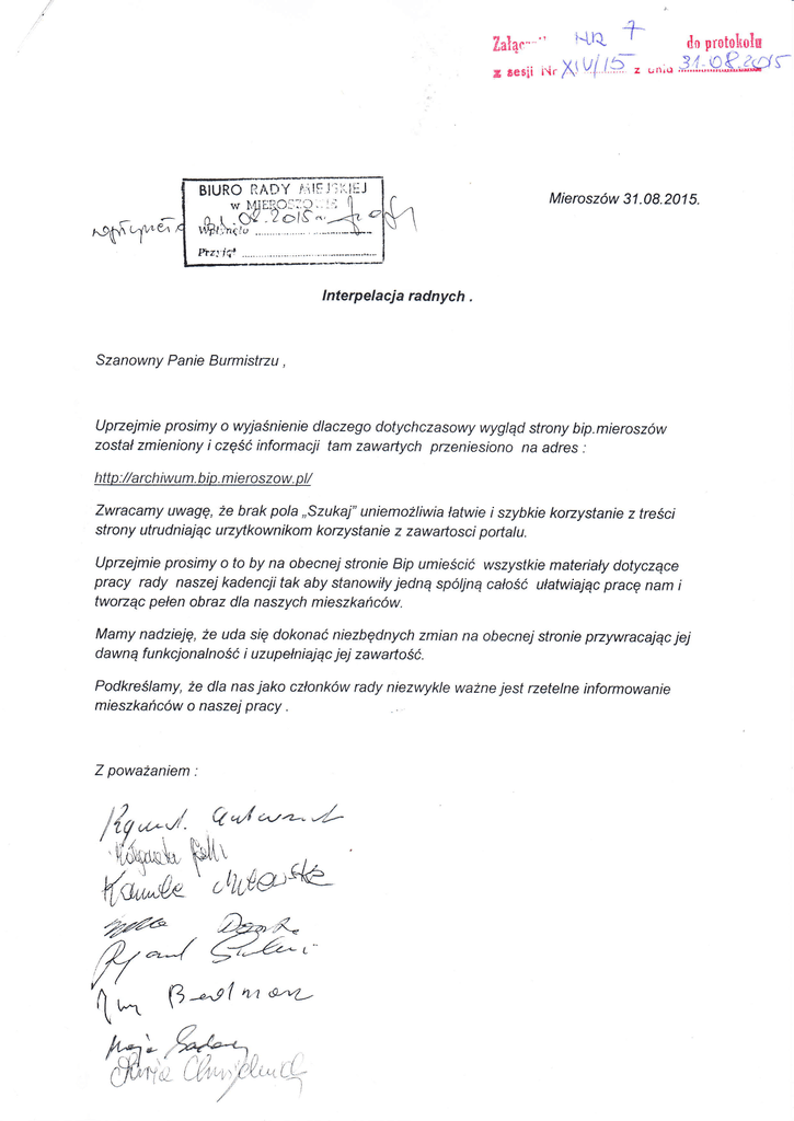 Uprzejmie prosimy o wyjaśnienie dlaczego dotychczasowy wygtąd strony bip.mieroszow
