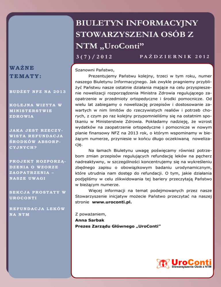 Biuletyn Infomacyjny Stowarzyszenia UroConti