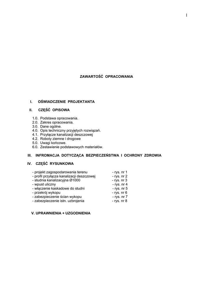 ZAWARTOŚĆ OPRACOWANIA I. OŚWIADCZENIE