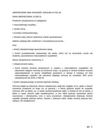 UBEZPIECZENIE NNW MŁODZIEŻY SZKOLNEJ PZU SA