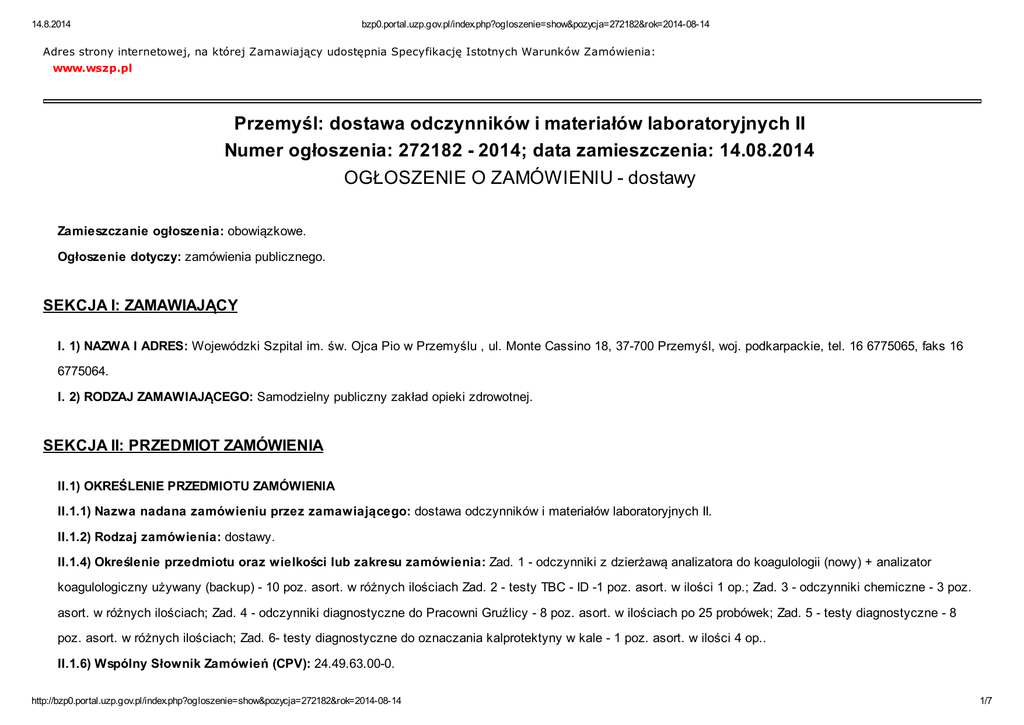 ogoszenie_o_zamwieniu - Wojewódzki Szpital im. Św. Ojca Pio
