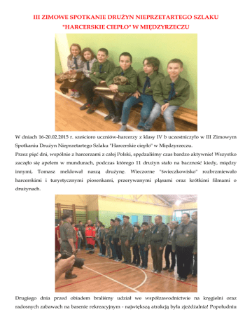 iii zimowe spotkanie drużyn nieprzetartego szlaku "harcerskie ciepło"