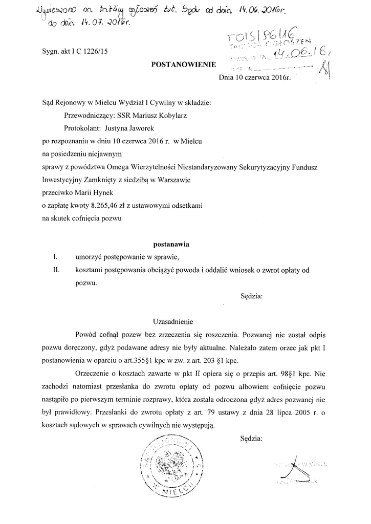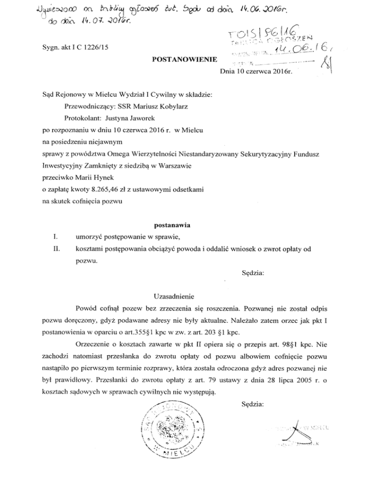 po rozpoznaniuw dniu 10 czerwca2016 r. w Mielcu