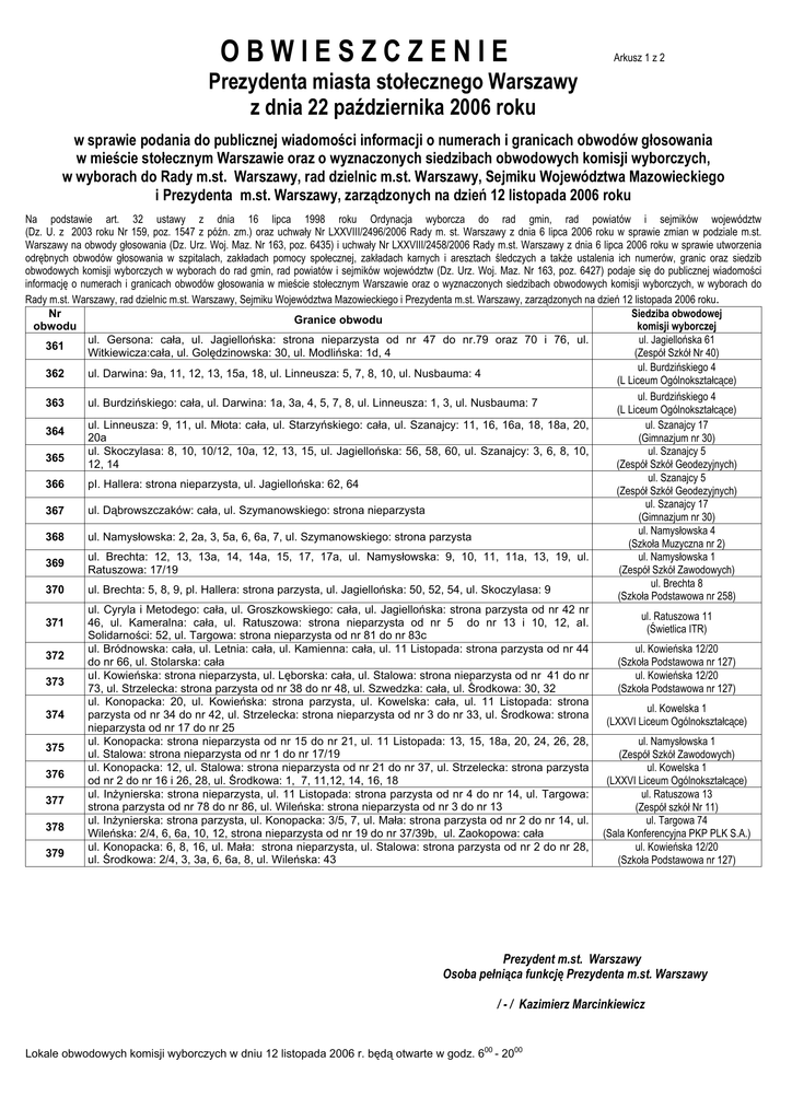 Obwieszczenie Prezydenta miasta stołecznego Warszawy z dnia 22