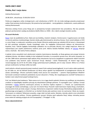 Analogie do tamtej epoki zauważa sam Romanowski, pisząc, że Putinowska aneksja Krymu przypomina działania