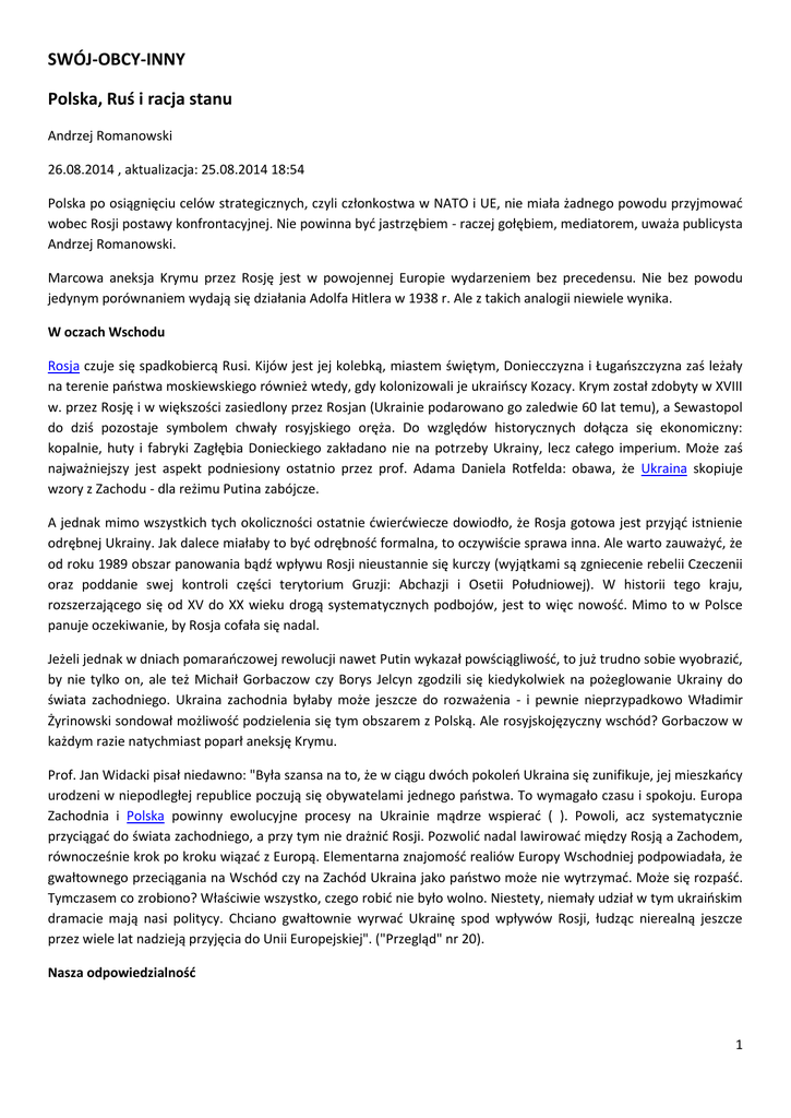 W zdumiewającym tekście "Polska, Ruś i racja stanu" ("Wyborcza" z 26 sierpnia) Andrzej Romanowski postawił tezę,