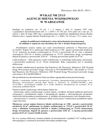 WYKAZ NR 23/13 AGENCJI MIENIA WOJSKOWEGO W WARSZAWIE