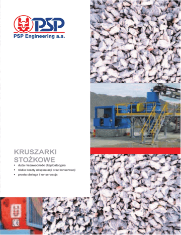 KRUSZARKI STOĩKOWE duĪa niezawodnoĞü eksploatacyjna niskie koszty eksploatacji oraz konserwacji prosta obsáuga i konserwacja Kruszarki stoĪkowe KDC - obniĪanie kosztów KRUSZENIE PSP Engineering nowo rozwinąá seriĊ kompaktowych kruszarek stoĪkowych KDC, która inowuje aktualne kruszarki KDH. W naszym stanowisku badawczym oraz w eksploatacji osiągają kruszarki KDC wysokie parametry zdolnoĞciowe przy nsikich kosztach eksploatacyjnych, wysoką niezawodnoĞü i áatwą konserwacjĊ podczas eksploatacji. ZdolnoĞü techniczna kruszarek KDC poruszą siĊ w granicach od kilku dziesiątek aĪ po 800 ton pokruszonego materiaáu za godzinĊ. KaĪda wielkoĞü kruszarki jest dostarczana w wiĊcej wariantach, które są dane rozmiarami otworu wstĊpnego. Kruszarki są wyposaĪone w urządzenie hydrauliczne, które umoĪliwia proste nastawienie szczeliny wyjĞciowej i áatwe opróĪnienie przestrzeni kruszącej po zawaleniu. WyposaĪenie wnĊtrzne kruszarki chroni przed nadmiernym obciąĪeniem lub podczas przejĞcia przedmitou, którego nie da siĊ kruszyü. Hydrauliczne kruszarki stoĪkowe KDC są przezaczone do wtórnego i tercialnego kruszenia twardych, abrazyjnych, nieklejących siĊ materiaáów o pewnoĞci w ciĞnieniu aĪ 400 Mpa jakimi są kwarc, granit lub bazalt. Kruszarki KDC zwyczajnie dostarczane są ze wspólnym ramem i napĊdem uáoĪonym na gumowych sprĊĪynach, które redukują dynamiczne obciąĪenie konstrukcji noĞnej pod kruszarką. Podstawowa charakterystyka serii kruszarek KDC: Kruszarka stoĪkowa 90 kW - kruszenie Īwiru wysoka niezawodnoĞü eksploatacyjna niskie koszty na eksploatacjĊ i konserwacjĊ masywne konstrukcje wysoki stopieĔ rozdrabniania áatwa konserwacja áatwa obsáuga wysoka wariabilnoĞü áatwe nastawienie szczeliny kruszeniowej áatwe opróĪnianie przestrzeni kruszącej zawaleniu optymalna geometria przestrzeni kruszącej áatwe wprowadzenie kruszarki do linii automatyzowanych pilotowa obsáuga eksploatacji z waáów z chromowanadowej stali z internetu wysoka jakoĞü produktu koĔcowego (granulometria i wartoĞü ksztaátowania) elementy kruszeniowe z wysoką zawartoĞcią manganu gáówny masywny waá z chromowanadowej stali eksploatacja automatyzowana stoĪkowe przekáadnia ze zĊbami spiralowymi Analiza obliczeniowa kruszarki stoĪkowej KDC. PrzesuniĊcia w modelu objĊtoĞciowym. Kruszarki KDC są wyposaĪone systemem kierującym COMPACT. COMPACT uáatwia eksploatacjĊ i umoĪliwia maksymalne wykorzystanie pojemnoĞci kruszarki. Jest zdolny zmieniaü parametry on-line, podwyĪszyü jakoĞü produktu i Ğledziü parametry eksploatacyjne, jakimi są ciĞnienie w okrĊgu hydraulicznym, pobór napĊdu, wielkoĞü szczeliny wyjĞciowej i temperatura oleja do smarowania. Systemy kierujące regularnie opracowują parametry i w zaleĪnoĞci na ich wielkoĞci optymalizują czynnoĞü kruszarki. Uszkodzeniowe stany są Ğledzone i zapisywane. Analiza obliczeniowa kruszarki stoĪkowej KDC. Model metody elementów skoĔczonych (element skorupy). Analiza obliczeniowa stoĪka z waáem dla kruszarki stoĪkowej KDC. NaprĊĪenie w modelu objĊtoĞciowym StoĪek kruszarki KDC 26 przed montaĪem. 3D model stojaka oraz ciaáa kruszarki KDC eksploatacyjnych nadal trwa KRUSZENIE nasyp górne áoĪysko kruszący stoĪek kruszący páaszcz gáówny waá ciaáo páaszcza tuleja mimoĞrodowa stojak stojak áoĪysko wzdáuĪne waá poĞredni walec hydrauliczny Granulometryczny skáad produktu dla materiaáu o Ğredniej twardoĞci otwór sita kwadratowego [mm] przesyp (%) szczelina [mm] Kruszarki stoĪkowe - obniĪanie kosztów KRUSZENIE Staáa kruszeniowa przestrzeĔ kruszarki stoĪkowej KDC Kruszarki stoĪkowe KDC mają nowoczesne komory kruszeniowe, które utrzymują parametry produktu koĔcowego. Komora kruszeniowa ma zagiĊty ksztaát z wertykalnym obszarem otworu wejĞciowego, który pozostaje jednakowy po caáy czas ĪywotnoĞci elementów kruszeniowych. Wykonanie to zapewnia staáą, wysoką zdolnoĞü bez zmieniających siĊ parametrów produktu. PrzestrzeĔ kruszenia kruszarki drugiego stopnia Elementy kruszeniowe oprócz KDC 26xx i 36xx nie są podlane i moĪna ich áatwo i szybko wymieniü. Absencja masy lanej zkraca czas odstawienia maszyny i obniĪa uzaleĪnienie na warunkach klimatycznych. W mrozie moĪliwa jest wymiana zuĪytych elementów kruszeniowych poza wygrzewaną przestrzenią. Przy páaszczach kruszeniowych z wielkimi obrzeĪami, te obrzeĪa moĪna znowu uĪyü. Oddzielone obrzeĪa dodatkowo ulepszają siedzenie páaszczu kruszeniowego po caáej wysokoĞci ciaáa páaszczu. WielkoĞci otworów wejĞciowych kruszarek tercjalnych odpowiadają sortowaniu drobnego kamienia wedáug serii siatek 32, 63, 90, 120 i 150 mm. Ksztaát przestrzeni kruszeniowej przy wtórnych i tercjalnych kruszarkach KDC przynosi wyĪszą jakoĞü produktu koĔcowego i niĪsze koszty eksploatacyjne, które są dane niĪszym zuĪyciem elementów kruszeniowych. Gáówne parametry techniczne kruszarek drugiego stopnia kruszenia KDC maks. bryáa. typ szczelina wydajnoĞü wlotowa* mm mm t/h PrzestrzeĔ kruszenia kruszarki trzeciego stopnia KDC 22 HP 19 - 35 320 80 - 180 KDC 23 VP 25 - 50 405 135 - 300 KDC 23 HP 20 - 42 330 120 - 265 KDC 25 VP 30 - 63 500 240 - 560 KDC 25 HP 24 - 52 395 190 - 460 KDC 26 VP 35 - 65 650 340 - 800 KDC 26 HP 25 - 55 520 250 - 680 silnik el. kW 75 - 90 90 - 132 132 - 200 200 - 315 Gáówne parametry techniczne kruszarek trzeciego stopnia kruszenia KDC typ szczelina maks. bryáa. wlotowa* Zaáadunek kruszarki stoĪkowej 90 kW Kruszarka stoĪkowa KDH 1250 - kruszenie dolomitu Kruszarka stoĪkowa 200 kW - kruszenie bazaltu wydajnoĞü silnik el. kW mm mm t/h KDC 32 SP 10 - 25 170 45 - 120 KDC 32 JP 6 - 22 120 35 - 105 KDC 32 FP 4 - 16 65 30 - 80 KDC 33 SP 14 - 32 230 80 - 205 KDC 33 JP 10 - 25 170 65 - 170 KDC 33 GP 8 - 22 120 50 - 150 KDC 33 FP 6 - 18 60 45 - 135 KDC 35 SP 18 - 42 285 160 - 420 KDC 35 JP 12 - 32 170 130 - 340 KDC 35 GP 10 - 28 