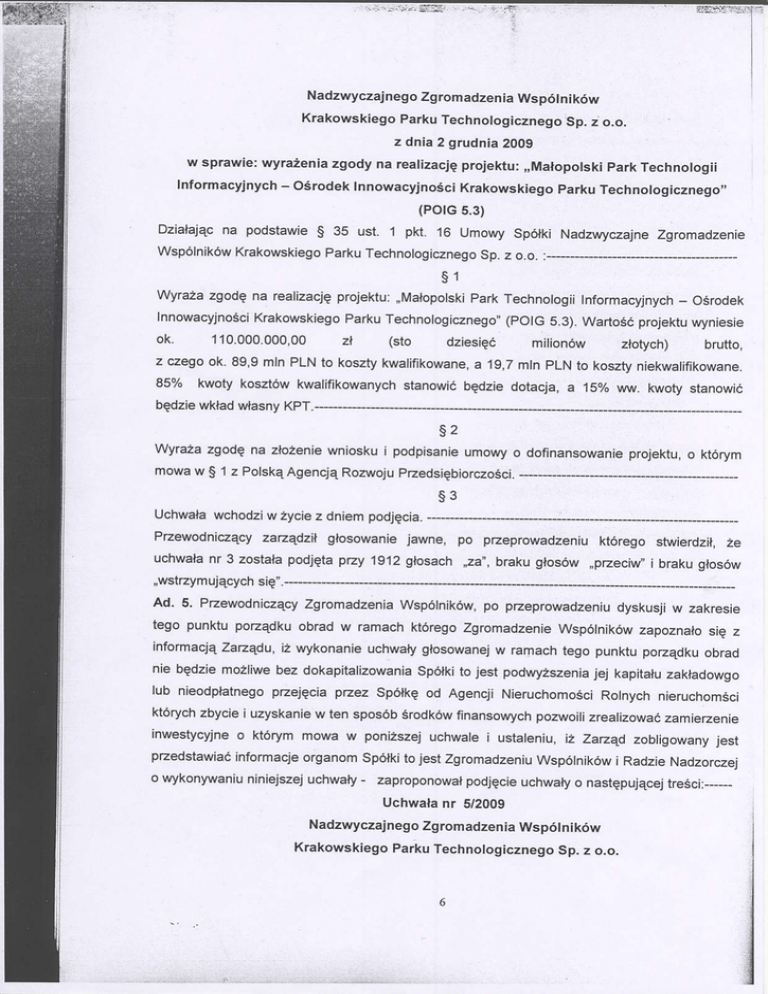Dzial4ac na podstawieS 35 ust. 1 pkt. ,16 UmowySp6lkj Nadzwyczajne