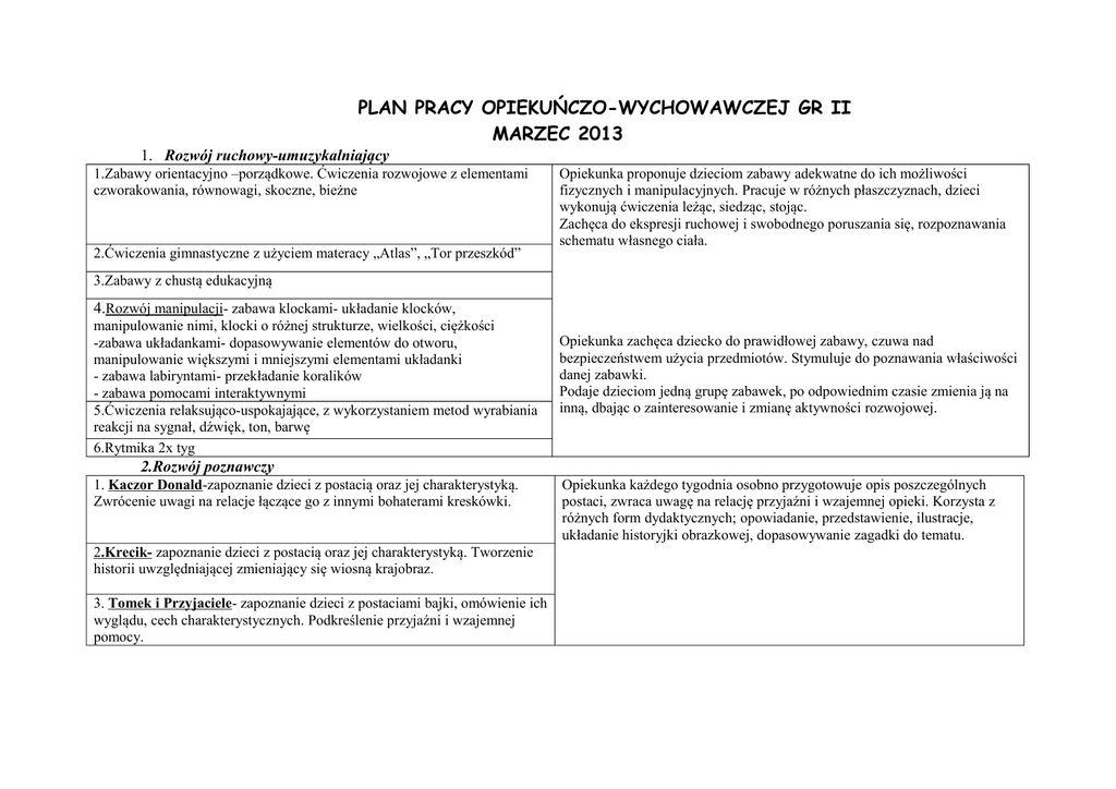 plan pracy opiekuńczo-wychowawczej gr ii marzec 2013