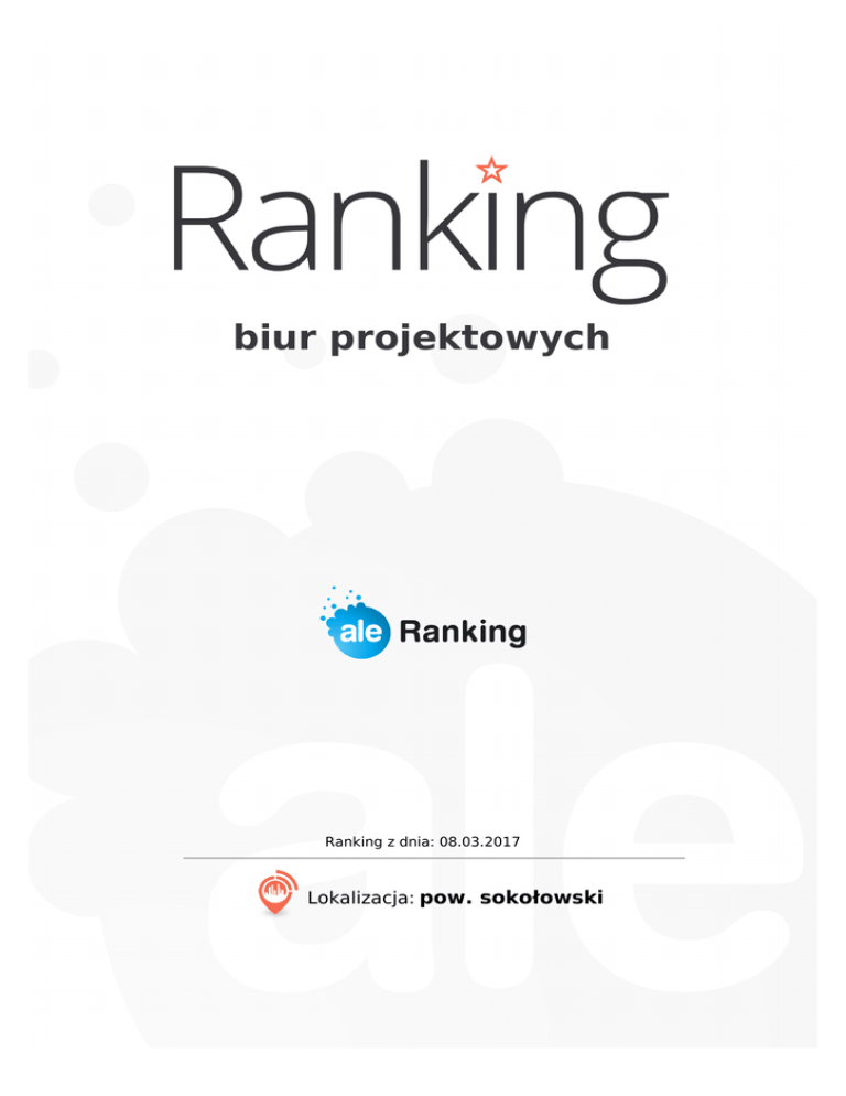 biur projektowych Ranking z dnia: 08.03.2017 Lokalizacja: pow. sokołowski Biura projektowe Lokalizacja: pow. sokołowski 1 IMS Projekt Marek Sadłowski 0,0 Liczba opinii: 0 Sokołów Podlaski, Spacerowa 10 510 147 494 imsprojekt.com.pl 2 Arch A.D.J. Projektowanie. Janista-Świderska A. 5,0 Liczba opinii: 1 Sokołów Podlaski, Wspólna 1 25 787 33 10 3 Piwko Marek. Biuro projektowe 0,0 Liczba opinii: 0 Sokołów Podlaski, Praweckiego 9 506 160 812 4 Jakubik Andrzej Projekty, Kosztorysy, Nadzory Budowlane 0,0 Liczba opinii: 0 Sokołów Podlaski, Zakątek 9 Copyright 2017 CS Group 2 Biura projektowe Lokalizacja: pow. sokołowski 5 Kompas Sp. z o.o. Biuro projektów 0,0 Liczba opinii: 0 Sokołów Podlaski, Grunwaldzka 3 lok. 27 25 781 31 58 6 Kompas Sp. z o.o. 0,0 Liczba opinii: 0 Sokołów Podlaski, Wolności 38 25 781 31 58 7 Makowska Elżbieta "EMAK-PROJEKT" 0,0 Liczba opinii: 0 Sokołów Podlaski, Pastelowa 7 8 Aramix. Biuro projektowe 0,0 Liczba opinii: 0 Sokołów Podlaski, Grunwaldzka 3 lok. 50 25 787 77 99 www.aramix.pf.pl Copyright 2017 CS Group 3 Biura projektowe Lokalizacja: pow. sokołowski 9 Kiciak Antoni 0,0 Liczba opinii: 0 Sokołów Podlaski, Węgrowska 103 10 Sadłowski Adam. Biuro projektowe 0,0 Liczba opinii: 0 Sokołów Podlaski, Konwaliowa 2 25 781 65 83 11 Skorupka Bogusław. Projektowanie 0,0 Liczba opinii: 0 Sokołów Podlaski, Gałczyńskiego 9 lok. 20 12 Tymińska-rowicka Agnieszka "AT" Usługi Projektowe, Nadzory, Kosztorysy - Branża Sanitarna 0,0 Liczba opinii: 0 Sokołów Podlaski, Gałczyńskiego 9 lok. 18 Copyright 2017 CS Group 4 Biura projektowe Lokalizacja: pow. sokołowski 13 Kowalczyk Artur Projektowanie Budowlane - Artur Kowalczyk 0,0 Liczba opinii: 0 Sokołów Podlaski, Skłodowskiej-Curie 18C lok. 31 14 Artisma Pracownia Aranżacji Wnętrz Marlena Steć 0,0 Liczba opinii: 0 Sokołów Podlaski, Skłodowskiej-Curie 7 lok. 38 15 Visual Lab Natalia Żochowska 0,0 Liczba opinii: 0 Sokołów Podlaski, Bohaterów Westerplatte 23 16 Mr Projekt Architektura I Wnętrza Magdalena Rybak 0,0 Liczba opinii: 0 Sokołów Podlaski, Siedlecka 66A Copyright 2017 CS Group 5 Biura projektowe Lokalizacja: pow. sokołowski 17 Taka Architektura Sylwia Filipek 0,0 Liczba opinii: 0 Sokołów Podlaski, Powstańców Śląskich 21 18 Studioteka Klaudia Żochowska 0,0 Liczba opinii: 0 Sokołów Podlaski, Bohaterów Westerplatte 23 19 Artych Halina. Projekty 0,0 Liczba opinii: 0 Sokołów Podlaski, Wolności 46 25 781 28 04 www.artych.pl 20 Skrzeszewska Halina. Biuro projektowe 0,0 Liczba opinii: 0 Sokołów Podlaski, Wolności 38 25 781 53 32 Copyright 2017 CS Group 6 Biura projektowe Lokalizacja: pow. sokołowski 21 El-Tom. Biuro usług technicznych. Rybicki T. 0,0 Liczba opinii: 0 Sokołów Podlaski, 8 Sierpnia 10 lok. 8 516 180 005 22 Klawe Krzysztof, mgr inż. Biuro usług projektowych 0,0 Liczba opinii: 0 Sokołów Podlaski, Chopina 8 25 781 25 14 23 Kosowski Andrzej. Projekty budowlane, kosztorysy, nadzory 0,0 Liczba opinii: 0 Sokołów Podlaski, Olszowa 15 25 781 36 93 24 Chmielewska Izabela, architekt 0,0 Liczba opinii: 0 Sokołów Podlaski, Monte Cassino 1 25 781 52 79 Copyright 2017 CS Group 7 Biura projektowe Lokalizacja: pow. sokołowski 25 Multikom. Biuro projektów ekologicznych. Rybak M. 0,0 Liczba opinii: 0 Sokołów Podlaski, Widokowa 1 26 Pasja. Biuro projektowe. Dmowski M. 0,0 Liczba opinii: 0 Wojewódki Dolne, 18 666 119 412 27 Katarzyna Makowska Kwm Project 0,0 Liczba opinii: 0 Sokołów Podlaski, Pastelowa 7 28 "M-Projekt" Justyna Stolarczuk 0,0 Liczba opinii: 0 Grodzisk, 70 a Copyright 2017 CS Group 8 Biura projektowe Lokalizacja: pow. sokołowski 29 Mirosława Więsak Biuro Projektowe 0,0 Liczba opinii: 0 Brodacze, 13 Zobacz więcej na: http://www.aleranking.pl/biura-projektowe Copyright 2017 CS Group 9