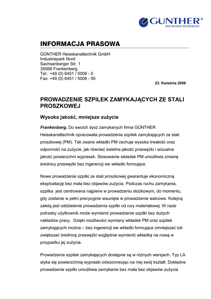 informacja prasowa - Günther Heisskanaltechnik