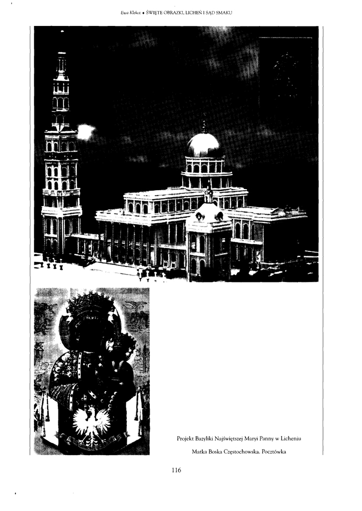 Ewa Klekot * ŚWIĘTE OBRAZKI, LICHEŃ I SĄD S M A K U II III * -• o u r '"i;. P r o j e k t Bazyliki Najświętszej M a r y i Panny w L i c h e n i u M a t k a Boska C z ę s t o c h o w s k a . Pocztówka 116 Ewa Klekot * ŚWIĘTE OBRAZKI, LICHEŃ I SĄD S M A K U P ewien znajomy historyk sztuki obiecał postawić m i piwo, jeśli zorganizuję pielgrzymkę Stowarzy LICHEŃ I WSPÓŁCZESNA szenia Historyków S z t u k i do L i c h e n i a . N i e po WRAŻLIWOŚĆ RELIGIJNA wątpiewał o n przy t y m o pobożności członków tej sza cownej i n s t y t u c j i , która co r o k u świętuje uroczystą mszą dzień błogosławionego Fra A n g e l i c o — p a t r o n a EWA historyków sztuki; chodziło m u o estetykę miejsca, do KLEKOT którego grono miałoby się udać; estetykę, która owe m u h i s t o r y k o w i sztuki jest wręcz nienawistnie obca i którą określa o n t e r m i n e m „kicz" - kategorią t y m Święte obrazki, Licheń i sąd smaku chętniej używaną, i m bardziej nieostrą. D o Lichenia 1 pojechałam jednak nie z członkami SHS, ale ze stu d e n t a m i etnografii; i bynajmniej nie dlatego, że obie cane p i w o wydawało m i się propozycją mało kuszącą. Jednym z podstawowych zabiegów metodologicznych h i s t o r i i sztuki jest rekonstrukcja kanonów estetycz n y c h i sposobu o d b i o r u dzieła właściwych epoce, w której o n o powstało. L i c h e ń powstał w latach terenowe wie, jak wielką pomocą i u t r u d n i e n i e m po osiemdziesiątych i dziewięćdziesiątych X X w i e k u , czy trafią być emocje, które budzi w nas badana rzeczywi li na naszych oczach - cóż więc t u rekonstruować? stość. N i e m a l identycznie zareagowali pierwsi studen M ó j sąd smaku nie różnił się o d o p i n i i znajomego; po ci, którzy pojechali ze m n ą do Lichenia w 1996 r o k u . dobne były odczucia studentów Katedry E t n o l o g i i S t a n ę ł a m nie tyle przed p r o b l e m e m „nieprzezroczysto- i A n t r o p o l o g i i K u l t u r o w e j U W : Licheń budził nasz es tetyczny sprzeciw. N a t o m i a s t nasi rozmówcy, zarówno na terenie s a n k t u a r i u m , jak i w miejscowościach o d niego o d d a l o n y c h , byli n i e m a l bez wyjątku zachwyce 2 n i licheńską G o l g o t ą . Uznałam, że licheński kicz to 3 „zła sztuka naszego czasu" i prace naszej grupy labo 4 ratoryjnej 5 f e m " (co wymagało zawieszenia sądu smaku l u b zrelatywizowania go w sposób przekonujący) l u b „bycia so b ą " (okazało się, że przynajmniej w m o i m w y p a d k u sąd smaku, jako w dużej mierze oparty bezpośrednio na doświadczeniu zmysłowym, jest najsłabiej uzasad zaczęliśmy o d badania rozbieżności este n i o n y dyskursywnie, a przez to najmniej podatny na tycznych standardów w obrębie sztuki religijnej, zakła relatywizację ). Okazało się, że mój odbiór rzeczywi 7 dając, że „złej sztuce" musi towarzyszyć „dobra". Teren stości jest w dużym s t o p n i u zdeterminowany estetycz do badań wybrany był po pierwsze w t a k i sposób, by nie i że bardzo utożsamiam się z własnym sądem sma pozwolił przyjrzeć się recepcji o b i e k t u współczesnej sztuki sakralnej ocenionego przez nas pozytywnie pod względem estetyki - kościół p.w. Opatrzności Bożej k u . Jak już wspomniałam, historia sztuki z i n t e r p r e t a cyjnych narzędzi podsuwała t y l k o negatywnie nace chowaną kategorię kiczu, która jedynie potęgowała w Wesołej z wnętrzem zrealizowanym przez Jerzego estetyczną obcość L i c h e n i a ; natomiast rozwiązaniem, Nowosielskiego - oraz takiego, który z powodów este które podpowiadał antropologiczny relatywizm, było tycznych budził nasz sprzeciw ( L i c h e ń ) . Po drugie założenie, że istnieją rozbieżne k a n o n y estetyczne, de chodziło też o szersze przyjrzenie się współczesnej sztu terminujące sądy członków SHS i studentów etnogra ce religijnej oczyma jej użytkowników, stąd nasze po f i i z jednej strony oraz w i e r n y c h odwiedzających L i byty w Częstochowie i K a l w a r i i Zebrzydowskiej oraz c h e ń i zaopatrujących się w dewocyjne obrazki z d r u badania r y n k u sztuki dewocyjnej. O d p o w i e d z i na na giej. (Co jednak, jeśli ktoś należałby do o b y d w u t y c h sze pytania szukaliśmy przede wszystkim w material- kategorii? M i m o że nie udało n a m się kogoś takiego ności przedmiotów, które nasz system klasyfikacji na spotkać, nie można przecież wykluczyć sytuacji, że kazywał nazywać „sztuką religijną", ponieważ uznali członkowie S H S pojadą jednak d o Lichenia.) śmy, że sztuka nie istnieje bez swej materialności, i to Badania do pewnego stopnia przekonały nas, że właśnie materialność przedmiotu (wizerunku) jest n o także w dziedzinie sztuki religijnej prawdą jest stwier śnikiem jego znaczeń, które z jednej strony d e t e r m i dzenie Pierre'a B o u r d i e u , stanowiące przewodnią myśl nują takie czy i n n e wartościowanie, a z drugiej stano jego książki La Distinction: wią materializację określonego rodzaju doświadcze nia. ści etnografa", ile przed alternatywą „bycia etnogra ment, s 6 Critique sociale du juge- o t y m , że smak nie tylko klasyfikuje przedmio ty, o których orzeka, ale także klasyfikuje społecznie Dlaczego zagadnienia wartości współczesnej sztuki tego, k t o sąd smaku formułuje. Różnica polegała na religijnej stały się c e n t r a l n y m t e m a t e m laboratorium? nieco o d m i e n n y c h w y b o r a c h przy zakupie obrazków Po pierwszym pobycie w L i c h e n i u zaskoczyła m n i e i dewocjonaliów oraz na t y m , że rozmówcy z dużych moja bezradność wobec własnej niechęci. N e g a t y w n y miast i lepiej wykształceni byli bardziej skłonni do ne sąd smaku zdeterminował moje nastawienie emocjo gatywnych wartościowań w obrębie sztuki religijnej. nalne do całości zjawiska, a każdy prowadzący bad