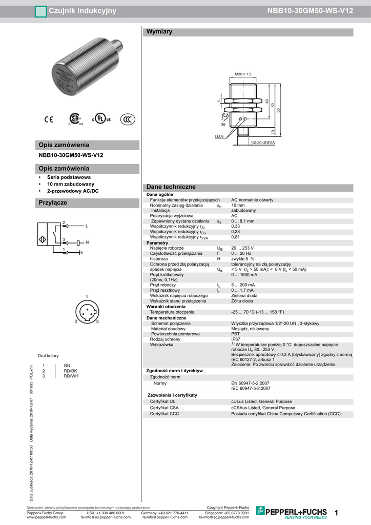 1 Czujnik indukcyjny NBB10-30GM50-WS-V12