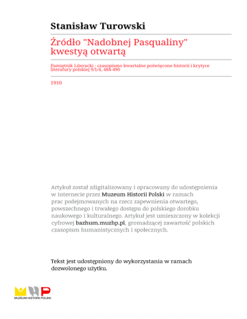 Stanisław Turowski Źródło "Nadobnej Pasqualiny" kwestyą otwartą