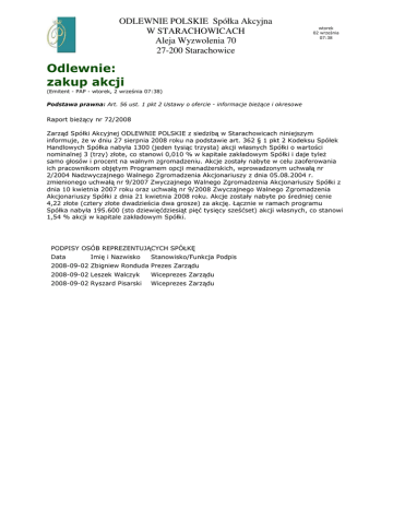 ODLEWNIE POLSKIE Spółka Akcyjna W STARACHOWICACH Aleja Wyzwolenia 70 27-200 Starachowice ! " # $% &' !( ()*+ ,-. )+%/. 0 $ % 1 1 ( 0! 2 3( $ 3 0 3 $0 4 5 67 / $ 03% &' 8 $9 ! 1% &' !' 7 ($ !0 !0 ( '0 ! 1% &' 9 ( ! ' 0 7 : 9 '$ ! % &' $ ( !9 0 ;'0& 9! ; $ 34 ( 0 ' ! ! 9 3 2 1 ( <! ; ( $ 0 1 $ ! 31 ' " =- $ ! ( ; , 9 ; #; $ ( 30 ! $ >4 4 = 4 ; 31 ' ?" # ! ( ; , 9 ; #; $ ( 30 !% &' $ 7 3 31 ' ?" # ! ( ; , 9 ; #; $ ( 30 !% &' $ 7 34 ( 0 ' ! ! $ ( = ' ! ' $ $ $ ; 0 ( <4@ 1 ; 3 % &' !' 7?>4 5 0 $ <A$ 0 <A !0< !0 A0 ( '0 ! 1 0 7>=: ( 9 '$ ! % &' 4 )* . %B)%CD * # -EFG HIBI8 % C@/J . < - 0 % $3$ 0 " K3 0# ( ? # ; $3 ? +0 , 9! , 0# $3 ? !0 $ 0 0 , 0# $3 $ 0