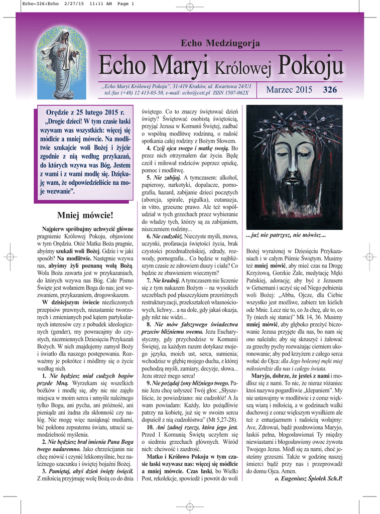 Mniej mów cie! - Echo Maryi Królowej Pokoju