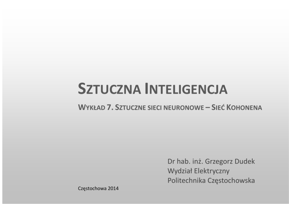 WYKŁAD 7. SZTUCZNE SIECI NEURONOWE – SIEĆ KOHONENA