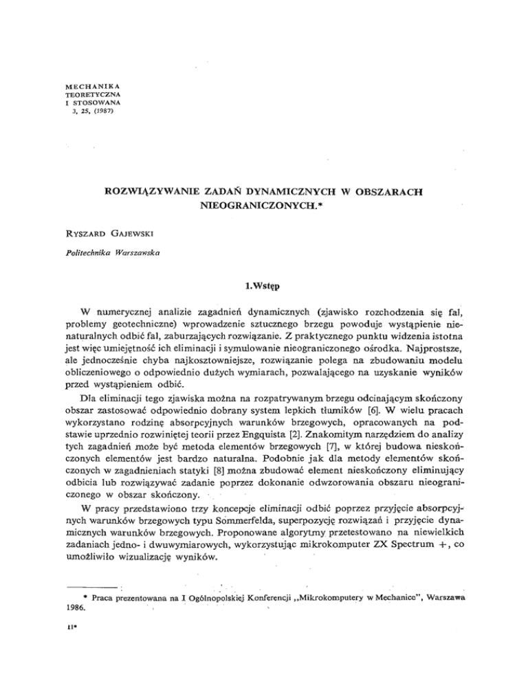 rozwiązywanie zadań dynamicznych w obszarach nieograniczonych