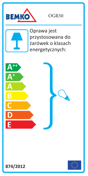 OGR50 Oprawa jest przystosowana do żarówek o klasach energetycznych: A++ A+ A B C D E 874/2012