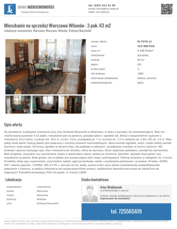 Mieszkanie na sprzedaż Warszawa Wilanów 63m2 - oferta M-7579-11