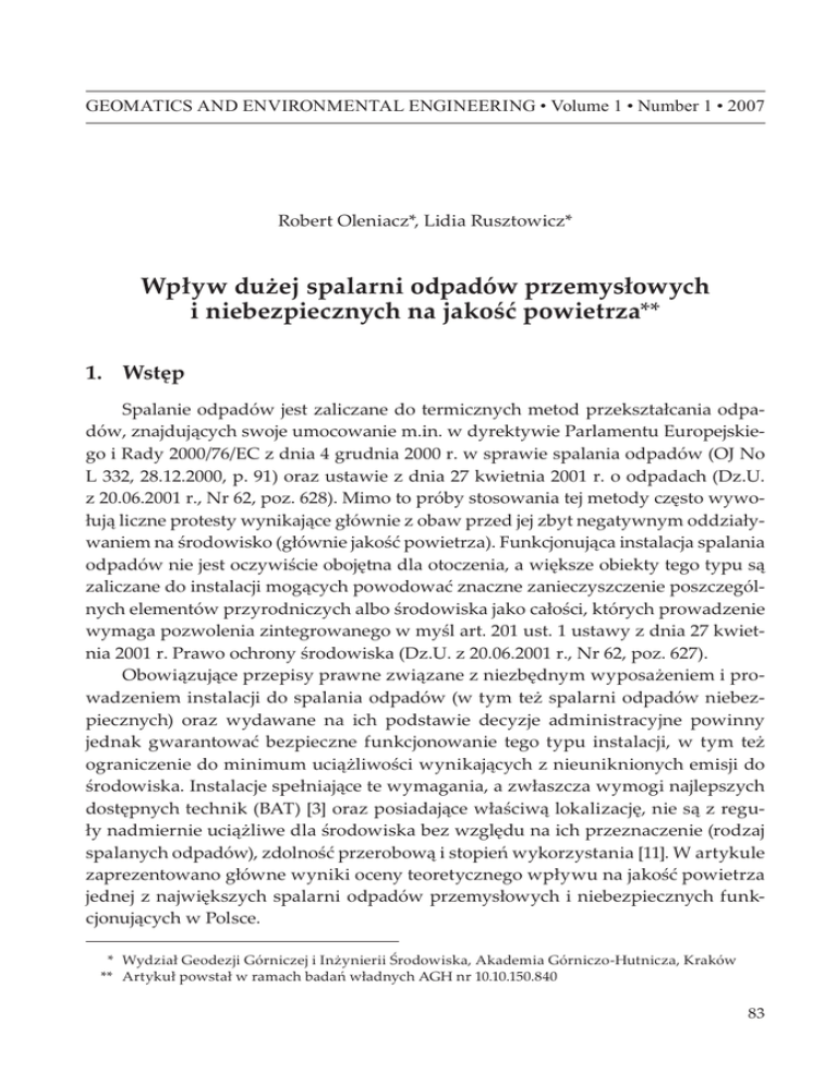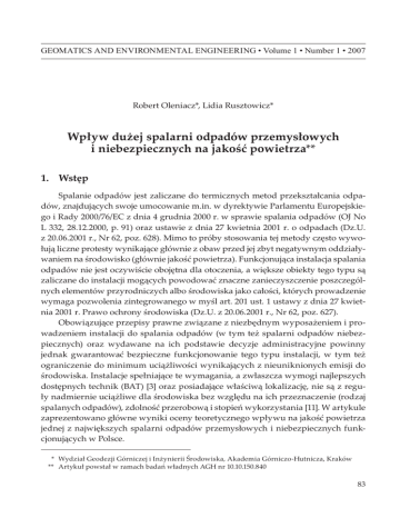 WpÙyw duČej spalarni odpadàw przemysÙowych i