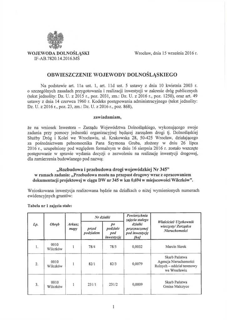 Obwieszczenie Wojewody Dolnośląskiego IF