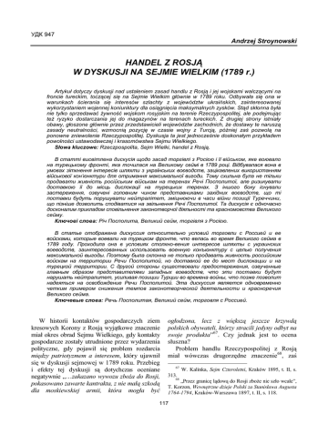 HANDEL Z ROSJĄ W DYSKUSJI NA SEJMIE WIELKIM (1789 r.)