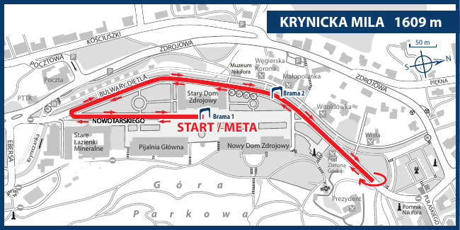 Bieg Małopolski 600 m KRYNICKA MILA 1609 m I szkiSZK OścŚiuCIU KKo ZD A P O CZTOW Poczta PTTK RY WA BUL 50 m A ROJOW Węgierska Muzeum Nikifora Korona Małopolanka A IETL D Stary Dom Zdrojowy WC WC WC WC Witoldówka WC nka Ebersa SAA EBERS EBER icza PIĘKNA JOW A Brama 1 NOWOTARSKIEGO Kryn RO Brama 2 WC Stare Łazienki Mineralne N S ZD START / META Wisła WC Nowy Dom Zdrojowy Pijalnia Główna Pod Zieloną Górką START a r ó G r k o w a Pomnik Nikifora O P IEG ASK a PUŁ Prezydent P