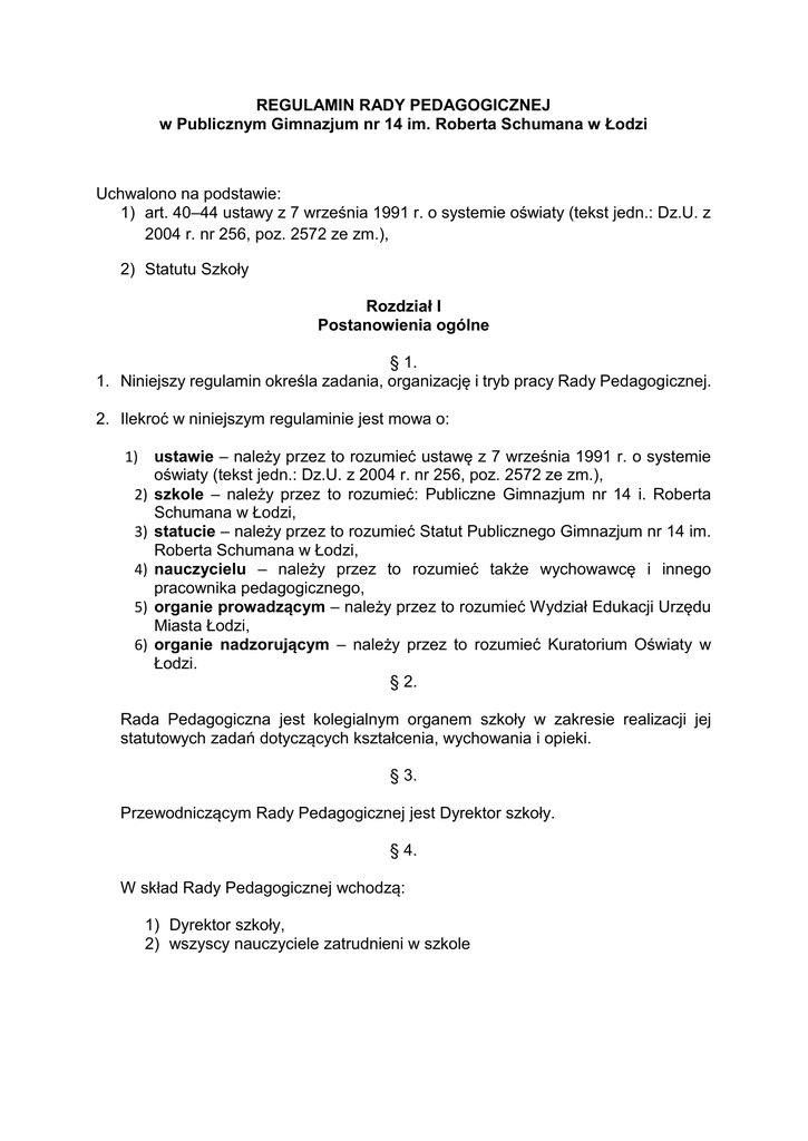 Regulamin Rady Pedagogicznej. - Publiczne Gimnazjum nr 14 w