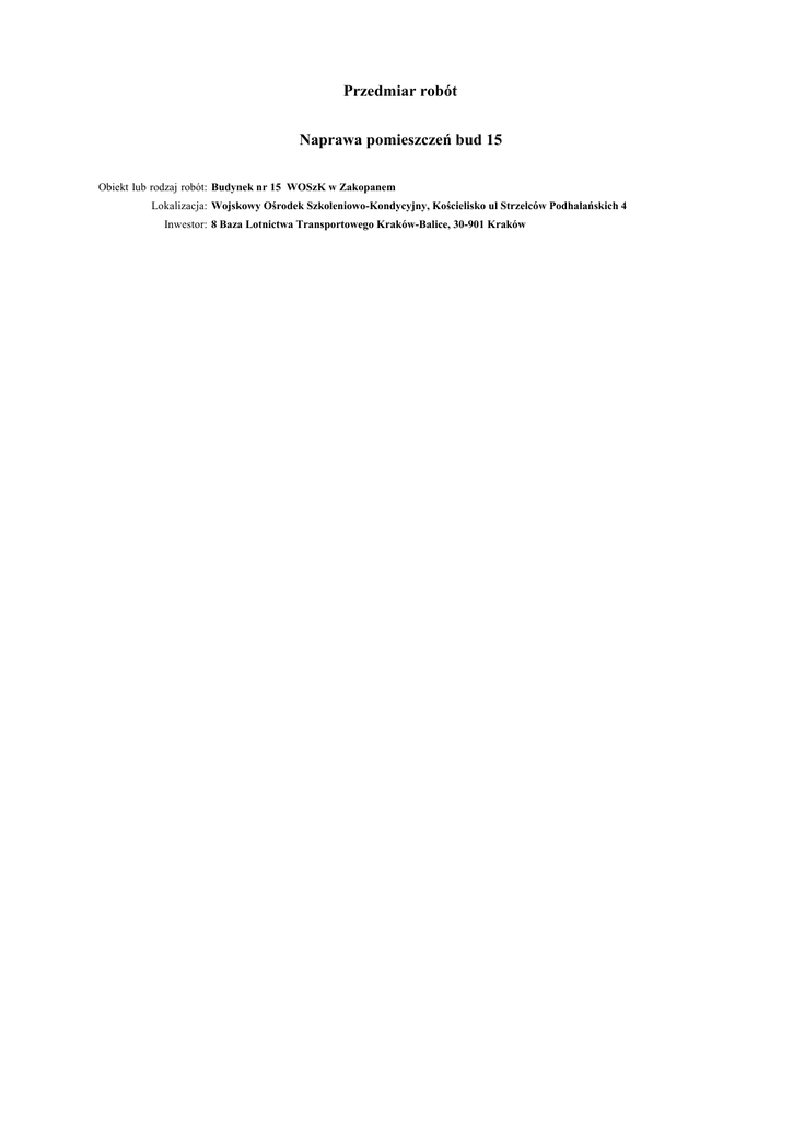 Przedmiar robót Naprawa pomieszczeń bud 15