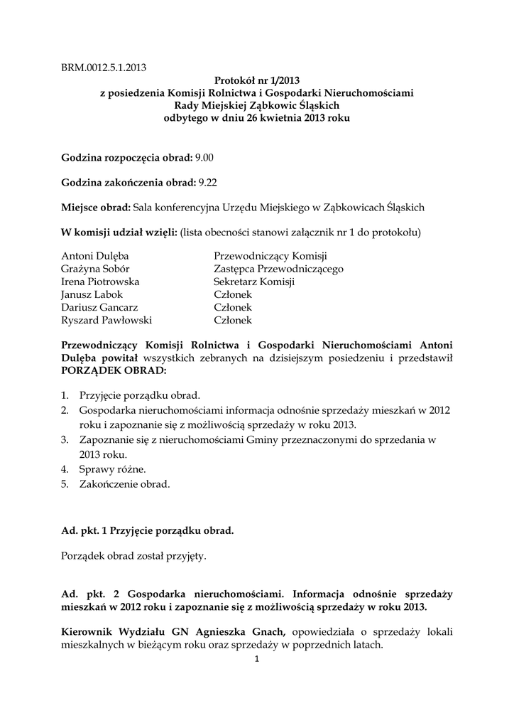 Protokół nr 1 Komisja Rolna 26_04_2013