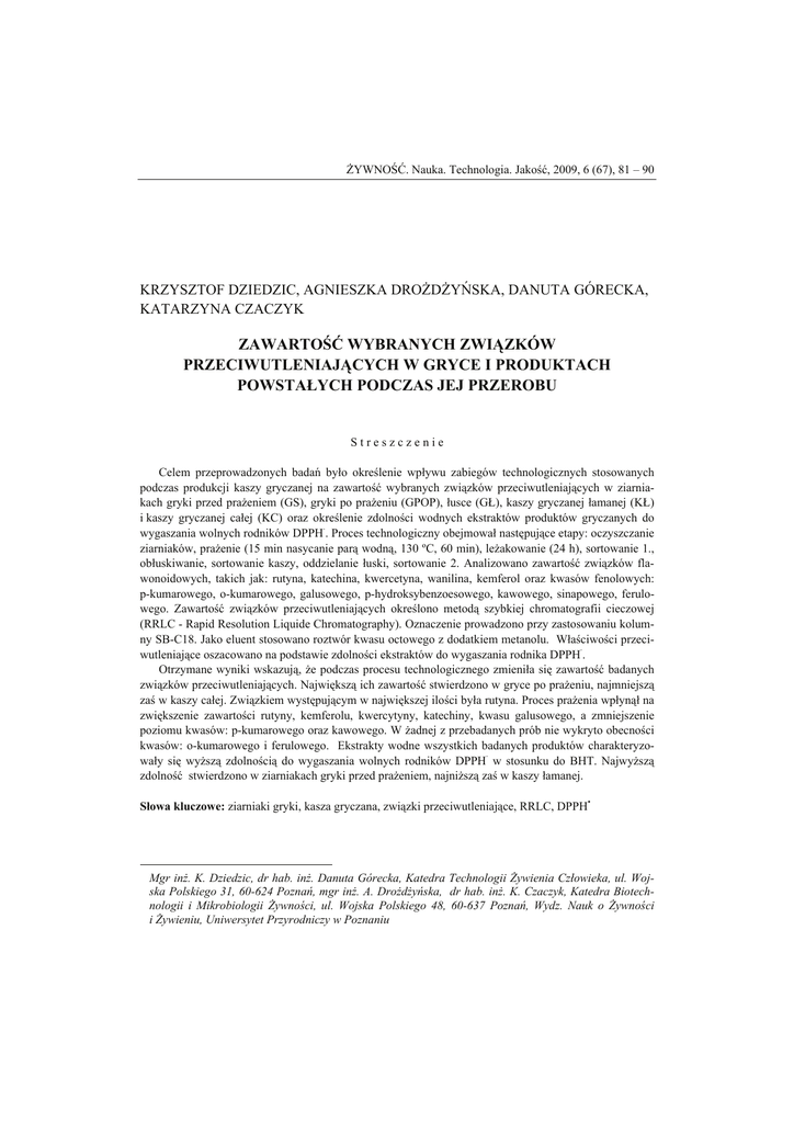Dietrych-Szóstak D., Oleszek W.: Obróbka technologiczna a zawartość antyoksydantów w przetworach gryczanych. Przem. Spoż., 2001, 1, 42-43.