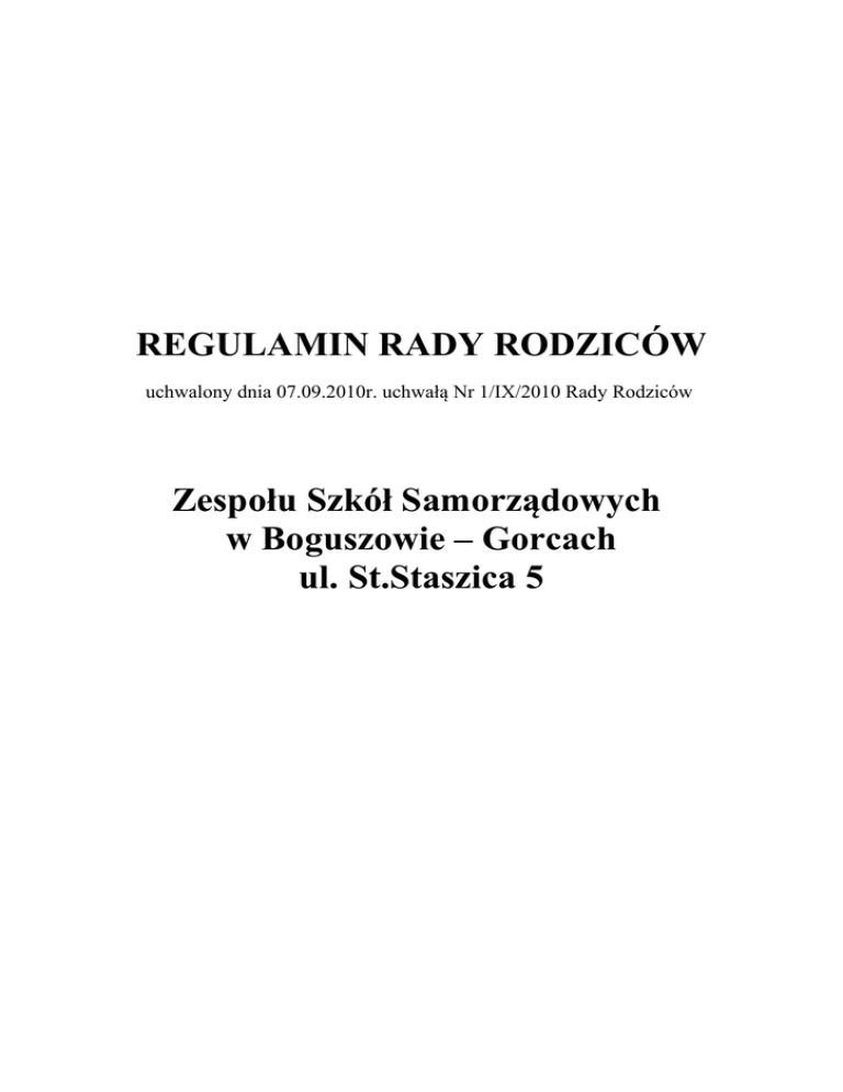 regulamin rady rodziców - Zespół Szkół Samorządowych w