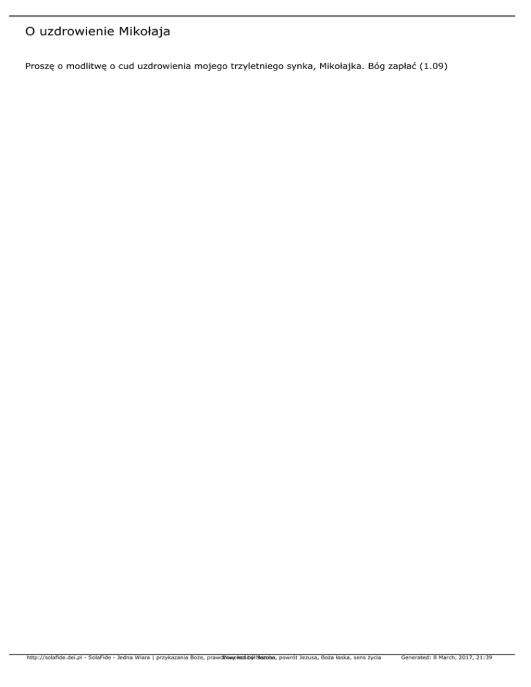 O uzdrowienie Mikołaja Proszę o modlitwę o cud uzdrowienia mojego trzyletniego synka, Mikołajka. Bóg zapłać (1.09) http://solafide.dei.pl - SolaFide - Jedna Wiara | przykazania Boże, prawdziwy Powered kościół by Mambo Jezusa, powrót Jezusa, Boża łaska, sens życia Generated: 8 March, 2017, 21:39