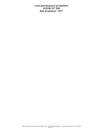 Lista powiazanych produktow SUZUKI GT 500 Rok produkcji: 1977 KLASA :: Wszelkie prawa zastrzeżone (c) 2002 - 2017 :: [email protected] :: www.sklepmotocyklowy.pl :: 8.03.2017 strona 1 / 1