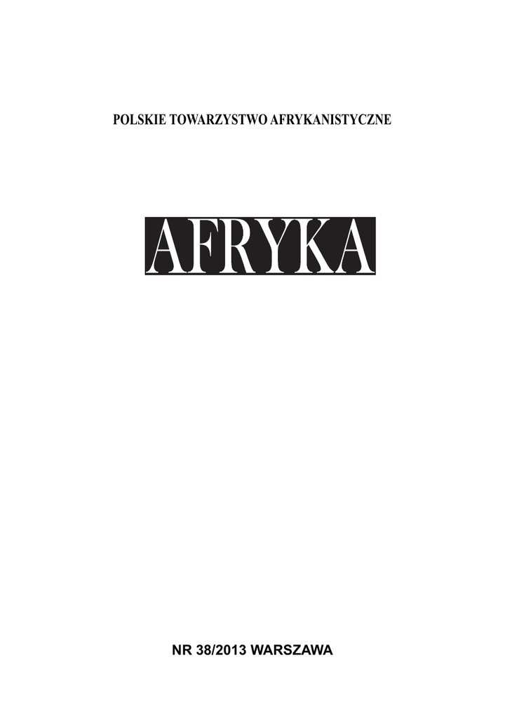 POLSKIE TOWARZYSTWO AFRYKANISTYCZNE NR 38/2013 WARSZAWA Polskie Towarzystwo Afrykanistyczne Adres do korespondencji (także w sprawie nabywania egzemplarzy „Afryki”): Katedra Języków i Kultur Afryki UW 00-927 Warszawa, Krakowskie Przedmieście 26/28 e-mail: [email protected] www.ptafr.org.pl Rachunek bankowy: PKO BP SA XIV O/Warszawa 76 1020 1156 0000 7802 0050 6345 Rada Naukowa dr hab. Jan Jakub Milewski, prof. UW dr hab. Bronisław Kazimierz Nowak, prof. UW dr hab. Jarosław Różański OMI, prof. UKSW prof. dr hab. Michał Tymowski dr hab. Ryszard Vorbrich, prof. UAM prof. dr hab. Henryk Zimoń prof. dr hab. Arkadiusz Żukowski Redaktor naczelny dr hab. Ewa Siwierska Redaktor tematyczny dr hab. Marek Pawełczak Sekretarz redakcji dr Małgorzata Szupejko Zespół redakcyjny: Wiesława Bolimowska dr Renata Díaz-Szmidt mgr Kinga Turkowska Redaktor językowy (język polski) Małgorzata Kąkiel Redaktor językowy (język angielski) Dafydd Wiliams © Copyright by Polskie Towarzystwo Afrykanistyczne ISSN-1234-0278 Na okładce: Rzeźba figuralna (detal): dwie kobiety w trakcie zabiegów pielęgnacyjnych; drewno polichromowane, barwniki naturalne; wysokość: 23 cm; tereny nad ujściem rzeki Kongo, gr. etn.: Bakongo, przed 1885 r.; z kolekcji Stefana Szolc-Rogozińskiego; zbiory Muzeum Etnograficznego im. Seweryna Udzieli w Krakowie (fot. Jacek Szymański). Opinie wyrażone w tekstach autorskich na łamach „Afryki” nie powinny być utożsamiane ze stanowiskiem władz PTAfr lub zespołu redakcyjnego. Wydawca: Polskie Towarzystwo Afrykanistyczne Katedra Języków i Kultur Afryki UW 00-927 Warszawa, Krakowskie Przedmieście 26/28 tel. +48 22 55 20 517 e-mail: [email protected] Publikacja numerów 37 i 38/2013 „AFRYKI” dotowana przez Ministerstwo Nauki i Szkolnictwa Wyższego Realizacja na zlecenie Wydawcy Oficyna Wydawnicza ASPRA-JR Nakład: 200 egz. SPIS TREŚCI SUMMARIES OF ARTICLES . . . . . . . . . . . . . . . . . . . . . . . . . . . . . 7 SPOŁECZEŃSTWO I KULTURA Małgorzata Szupejko Media i tożsamość w Afryce – studium kenijskie . . . . . . . . . . . . . . . .11 SPOŁECZEŃSTWO I POLITYKA Agnieszka Rostkowska Polityka zagraniczna Turcji wobec Afryki. Ofensywa nowego gracza na kontynencie . . . . . . . . . . . . . . . . . . . . . . . . . . . . . . .37 AFRYKAŃSKA MYŚL FEMINISTYCZNA Renata Díaz-Szmidt Nurty feminizmu w Afryce . . . . . . . . . . . . . . . . . . . . . . . . . . . . . . . . . .51 SZTUKA AFRYKI Aneta Pawłowska Artyści południowoafrykańscy wobec wyzwań nowej rzeczywistości postapartheidowej (część druga) . . . . . . . . . . . . . . . . .73 Z HISTORII AFRYKI – TEKSTY ŹRÓDŁOWE Wyznanie wiary cesarza Etiopii Klaudiusza Z amharskiego przetłumaczył i komentarzem opatrzył Marcin Krawczuk . . . . . . . . . . . . . . . . . . . . . . . . . . . . . . . . . . . . . . . . . .99 ARTYKUŁY DYSKUSYJNE I POLEMICZNE Robert Piętek Garcia II władca Konga a Kościół katolicki nie jest podręcznikiem dla współczesnych misjonarzy . . . . . . . . . . . . . . . . .107 „AFRYKA” 38 (2013 r.) 3 Spis treści KONFERENCJE NAUKOWE Konferencja ogólnopolska: Konteksty bezpieczeństwa w Afryce (relacja Wojciecha Kotowicza) . . . . . . . . . . . . . . . . . . . . . . .111 II Ogólnopolska Konferencja Naukowa: Współczesne literatury afrykańskie i teksty kulturowe w świetle badań postkolonialnych (relacja Renaty Diaz-Szmidt). . . . . . . . . . . . . . . . . .115 Seminarium naukowe: Polska-Afryka: nowy kierunek współpracy – szanse dla polskiej gospodarki i rozwoju Afryki (relacja Malwiny Bakalarskiej) . . . . . . . . . . . . . . . . . . . . . . . . .116 Kongres PolandAfrica 2013 (relacja Malwiny Bakalarskiej) . . . . . . .118 KRONIKA Dni Afryki w Olsztynie (relacja Iwony Anny NDiaye) . . . . . . . . . . . .123 Dni Konga Brazzaville w Polsce (relacja Roberta Enzanza i Lateef Erinfolami) . . . . . . . . . . . . . . . . . . .125 Wystawa: Skrzyżowane spojrzenia / Afryka. Studium. (relacja Jacka Kukuczki) . . . . . . . . . . . . . . . . . . . . . . . . . . . . . . . . . . . .128 Wystawa: „Błękitni ludzie z Sahary i Sahelu. Rissa Ixa – malarstwo”, Muzeum Regionalne w Kutnie . . . . . . . . . . . . . . . . . . .130 IFORMACJE REDAKCJI Lista recenzentów zewnętrznych . . . . . . . . . . . . . . . . . . . . . . . . . . . .131 Zasady przyjmowania tekstów do druku . . . . . . . . . . . . . . . . . . . . .131 IFORMACJE PTAfr . . . . . . . . . . . . . . . . . . . . . . . . . . . . . . . . . . 137 4 „AFRYKA” 38 (2013 r.) CONTENTS SUMMARIES OF ARTICLES . . . . . . . . . . . . . . . . . . . . . . . . . . . . . . . . 7 SOCIETY AND CULTURE Małgorzata Szupejko Media and Identity in Africa – Kenyan Study . . . . . . . . . . . . . . . . . . 11 SOCIETY AND POLICY Agnieszka Rostkowska Turkish Foreign Policy towards Africa. An Offensive by a New Player on the Continent . . . . . . . . . . . . . . . . . . . . . . . . . . . . 37 AFRICAN FEMINISM Renata Díaz-Szmidt Currents in African Feminism . . . . . . . . . . . . . . . . . . . . . . . . . . . . . . . 51 ART OF AFRICA Aneta Pawłowska The South African Artists and the Challenges of the New Post-Apartheid Reality (part two) . . . . . . . . . . . . . . . . . . . . . . . . . . . . 73 HISTORY OF AFRICA – SOURCE TEXTS Translation of the source text (from Amharic to Polish) known as Confessio Claudi and a commentary by Marcin Krawczuk . . . . . . . . . . . . . . . . . . . . . . . . . . . . . . . . . . . . . . . . 99 POLEMICS AND CONTROVERSIAL ARTICLES Robert Piętek The Book Garcia II and the Catholic Church Was Not Written as a Handbook for Contemporary Missionaries . . . . . . . . . . . . . . . . 107 „AFRYKA” 38 (2013 r.) 5 Contents CONFERENCES Polish National Scientific Conference: Security Contexts in Africa (relation by Wojciech Kotowicz) . . . . . . . . . . . . . . . . . . . . . . . . . . . . . . 111 II Polish National Scientific Conference: Contemporary African Literatures and Cultural Texts in the Light of