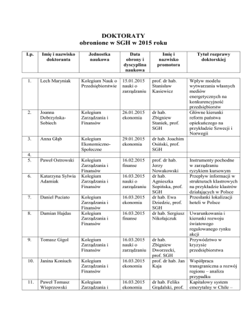 DOKTORATY obronione w SGH w 2015 roku